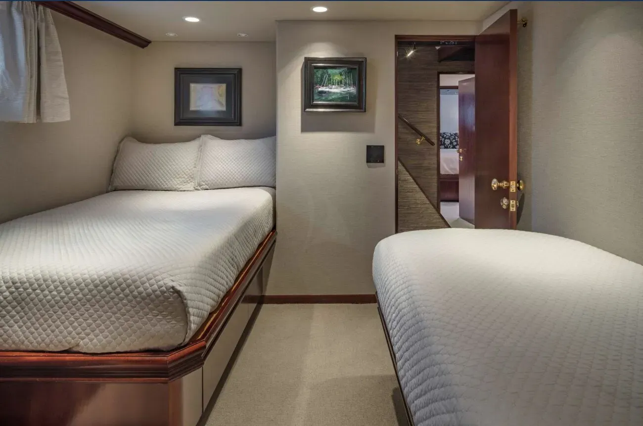 - VIP stateroom forward with Queen Bed, separate entrance through the galley/kitchen.