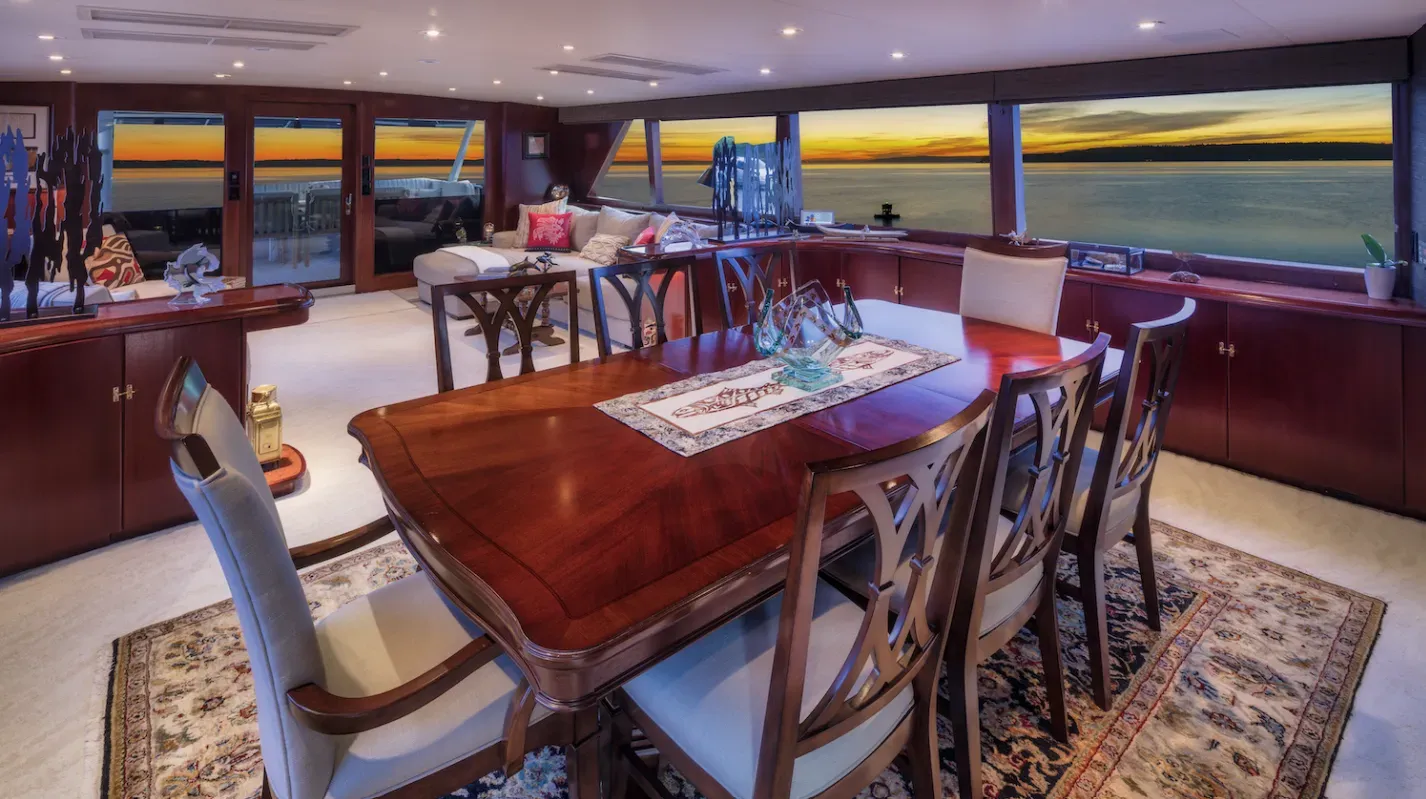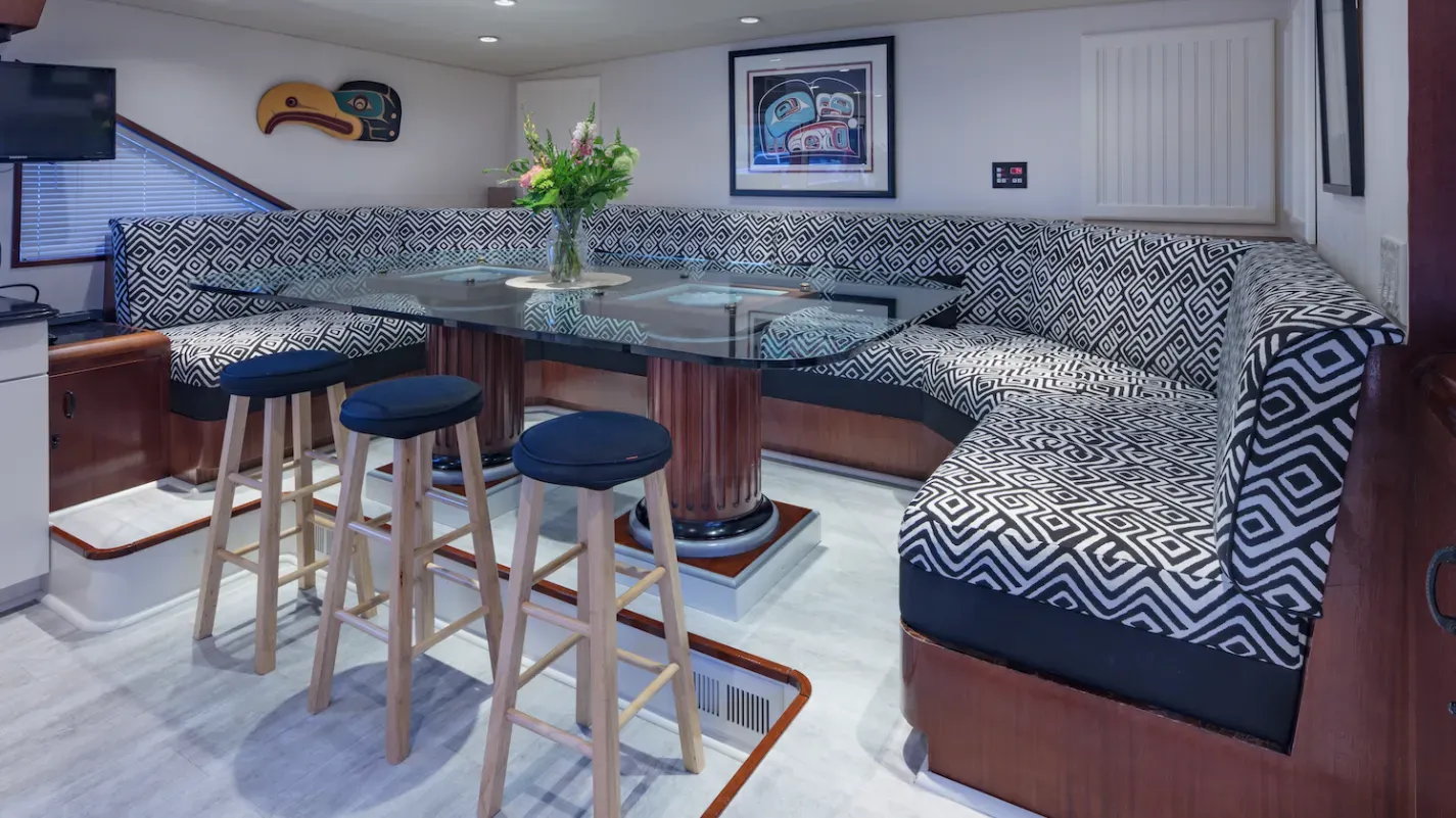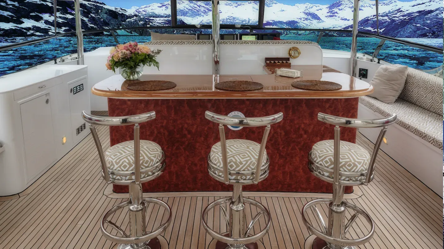 M/Y BLACKWOOD is a 31m (103’) luxury yacht that blends classic elegance with modern comfort, following a full refit in 2025. She accommodates up to 8 guests in 4 well-appointed ensuite cabins—Master, VIP, Queen, and Twin—and is cared for by a professional crew of four. Thoughtfully designed for Alaskan cruising, BLACKWOOD features an enclosed aft deck for all-weather dining, a cozy flybridge with lounge seating, fireplace, and Bluetooth sound system, and a warm saloon decorated with Alaskan artifacts and indigenous art. Modern amenities include air conditioning and heating throughout, Starlink Wi-Fi, and stabilizers for a smooth, comfortable ride.