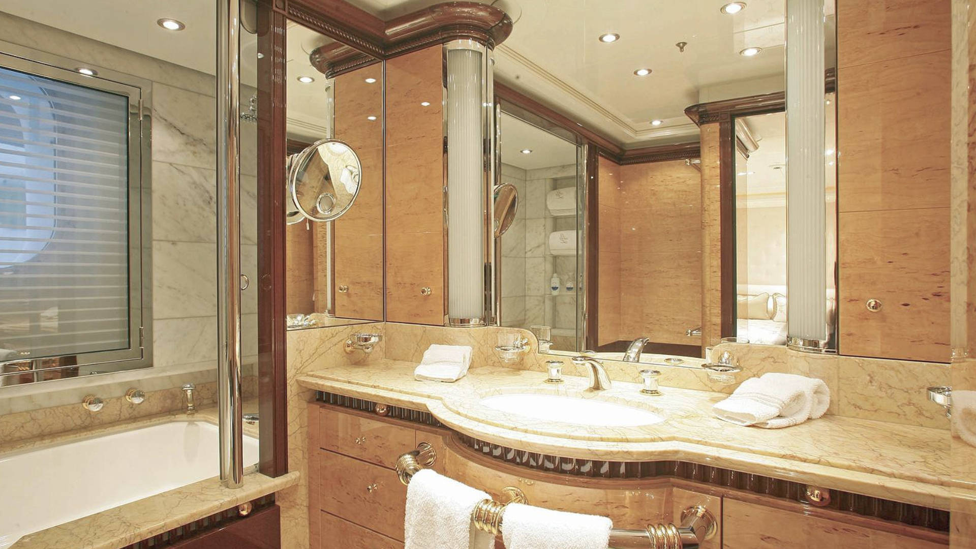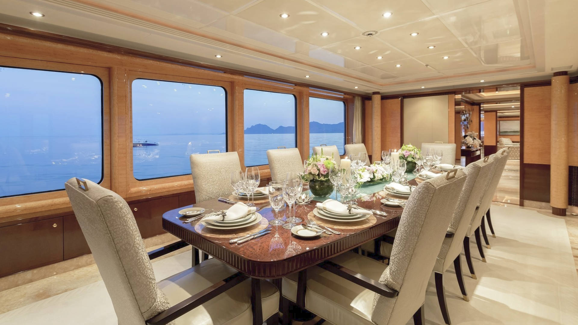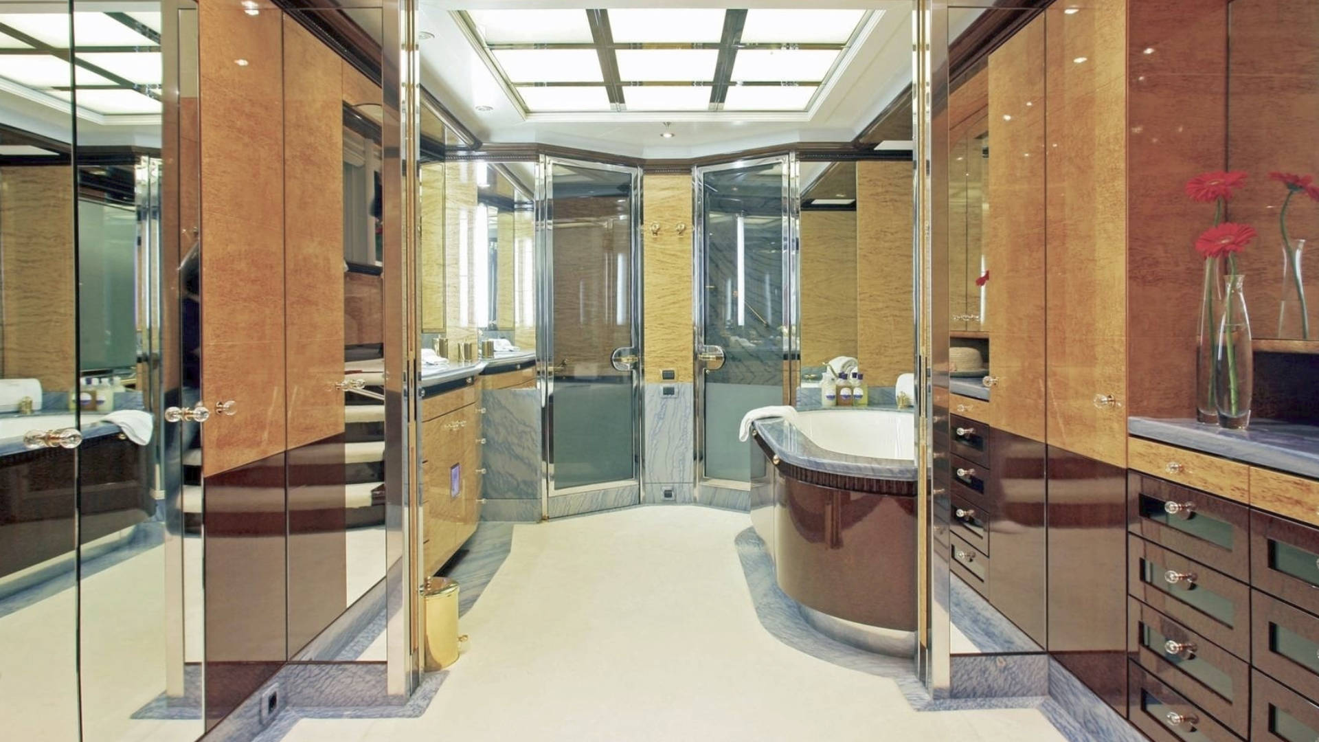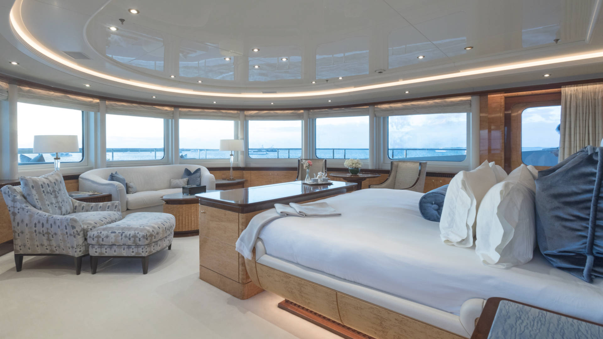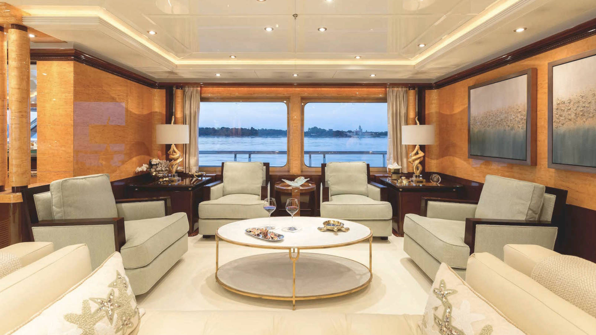 The top deck with 360 degree view is a heavenly place with a plunge pool with two level waterfall, a small paddling pool ideal for children and large sun pads. An aft area can be either a seating area or a golf tee!