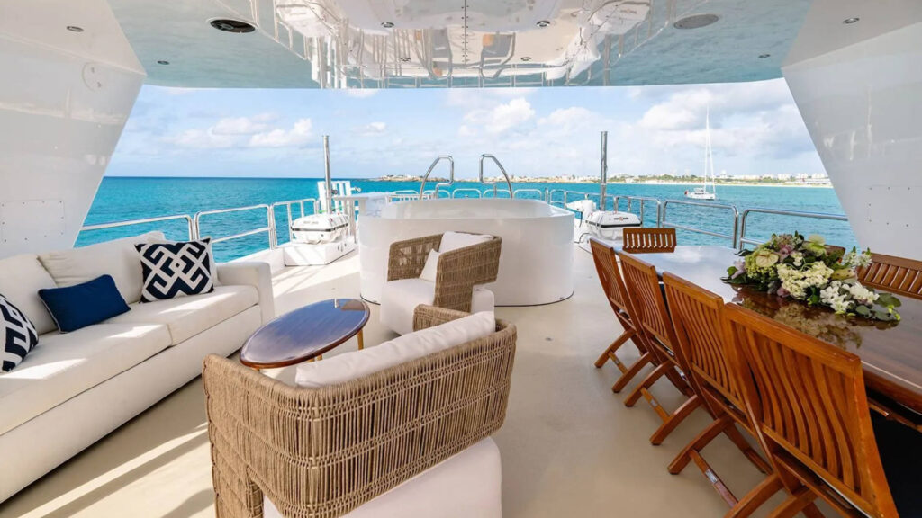 – Beach club experience with full BBQ setup and seamless sea access via large swim platform