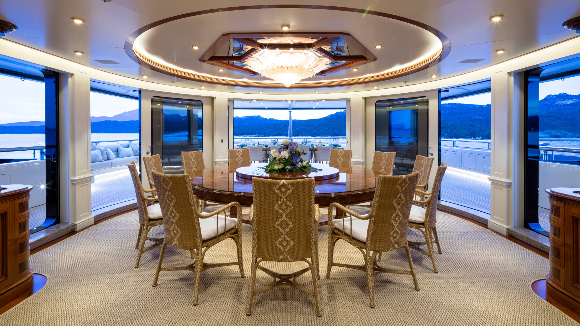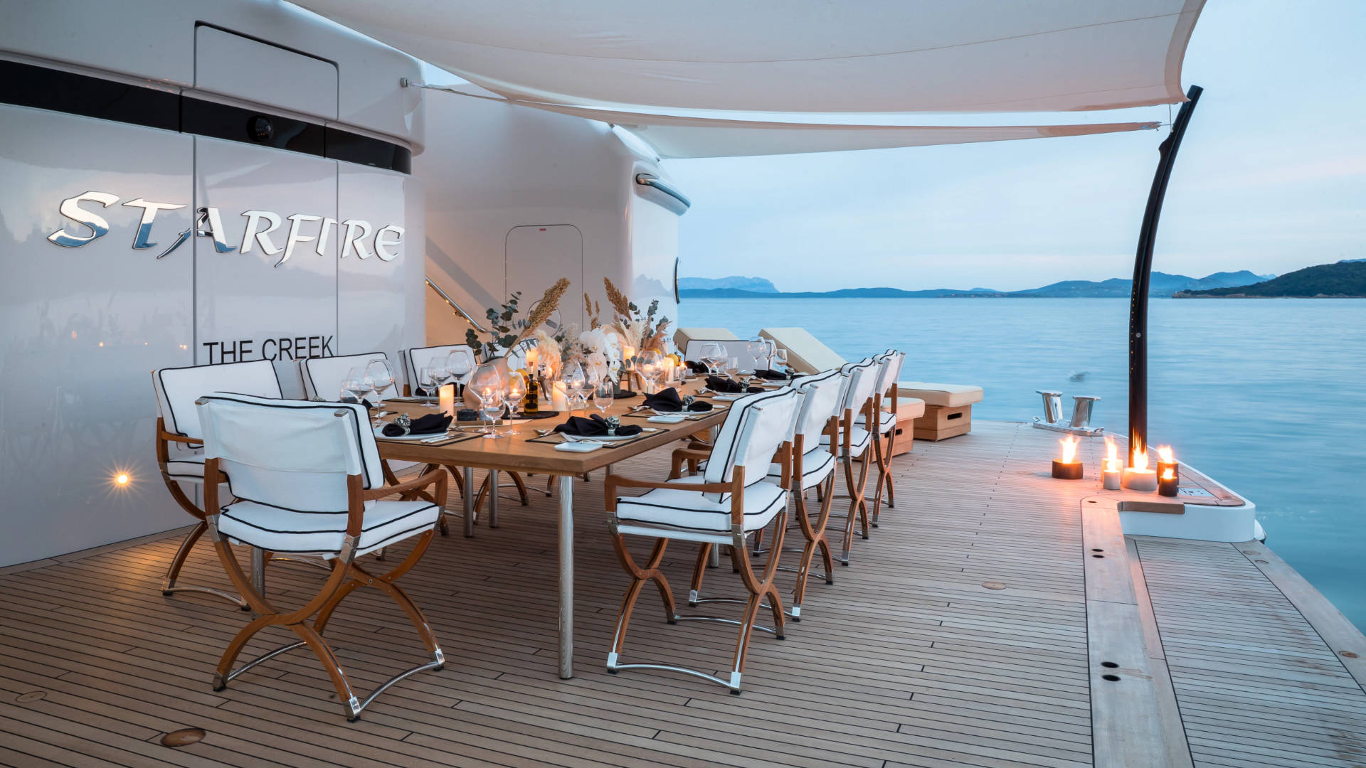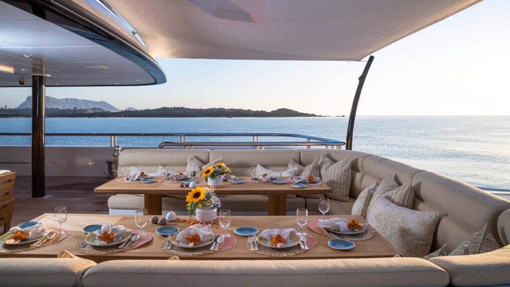 – The stern was specifically designed for up to 14 guests to dine al-fresco under the stars at water line.