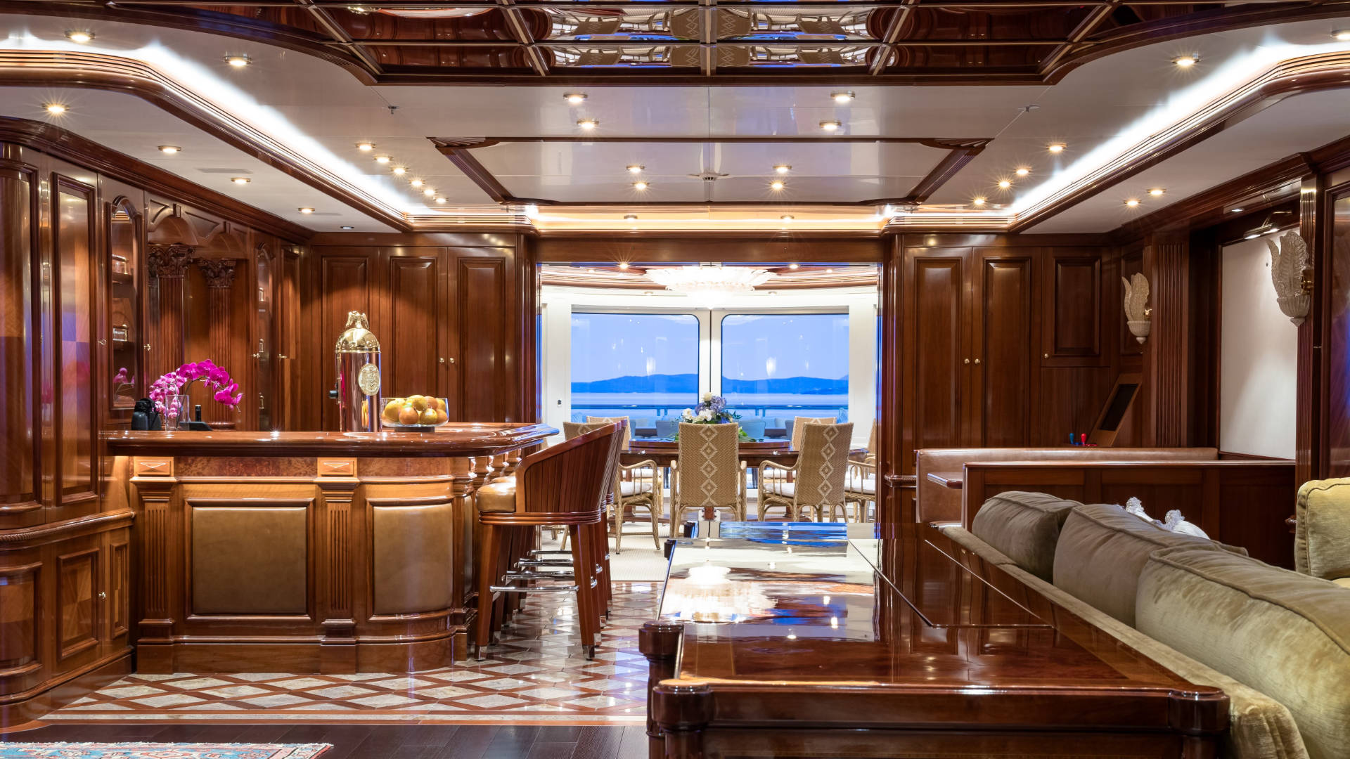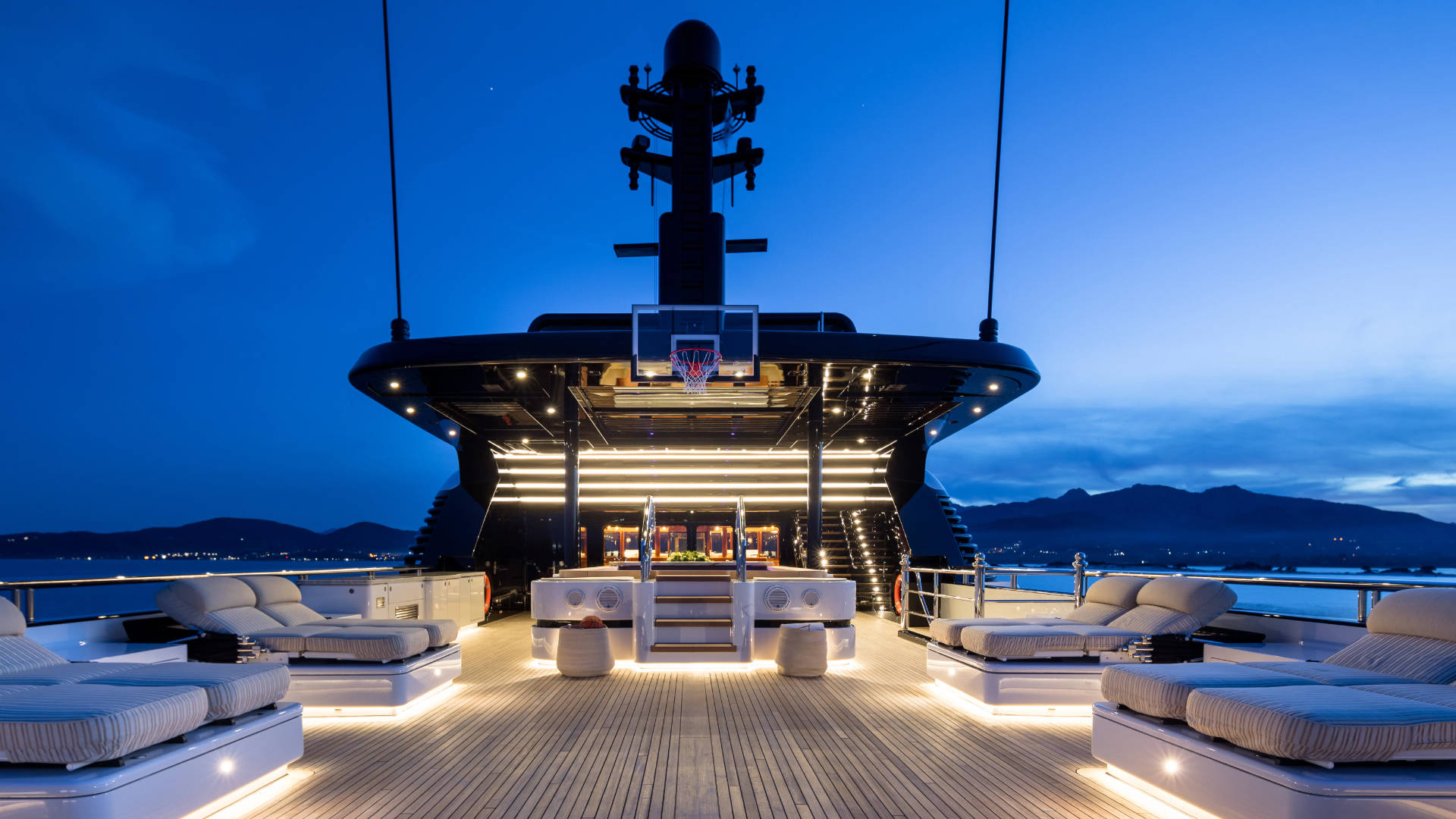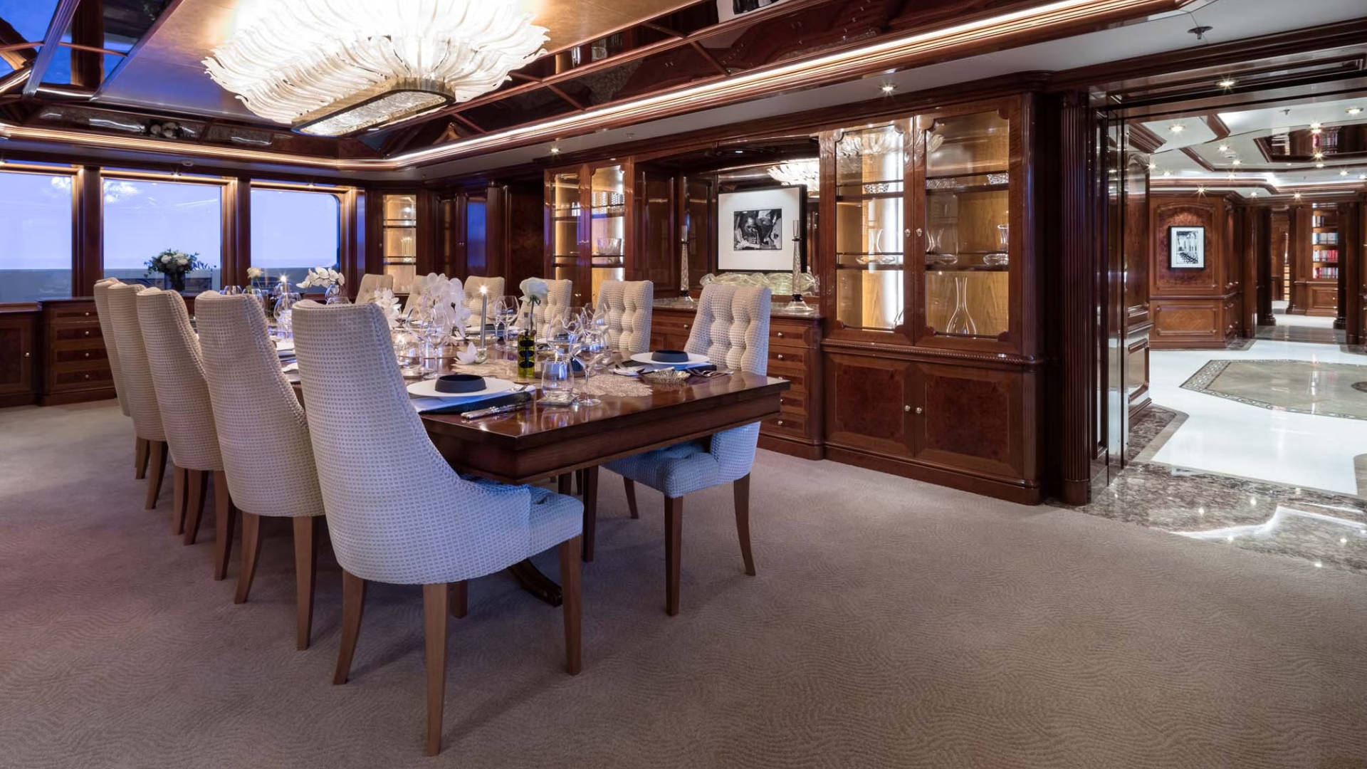 – The stern was specifically designed for up to 14 guests to dine al-fresco under the stars at water line.