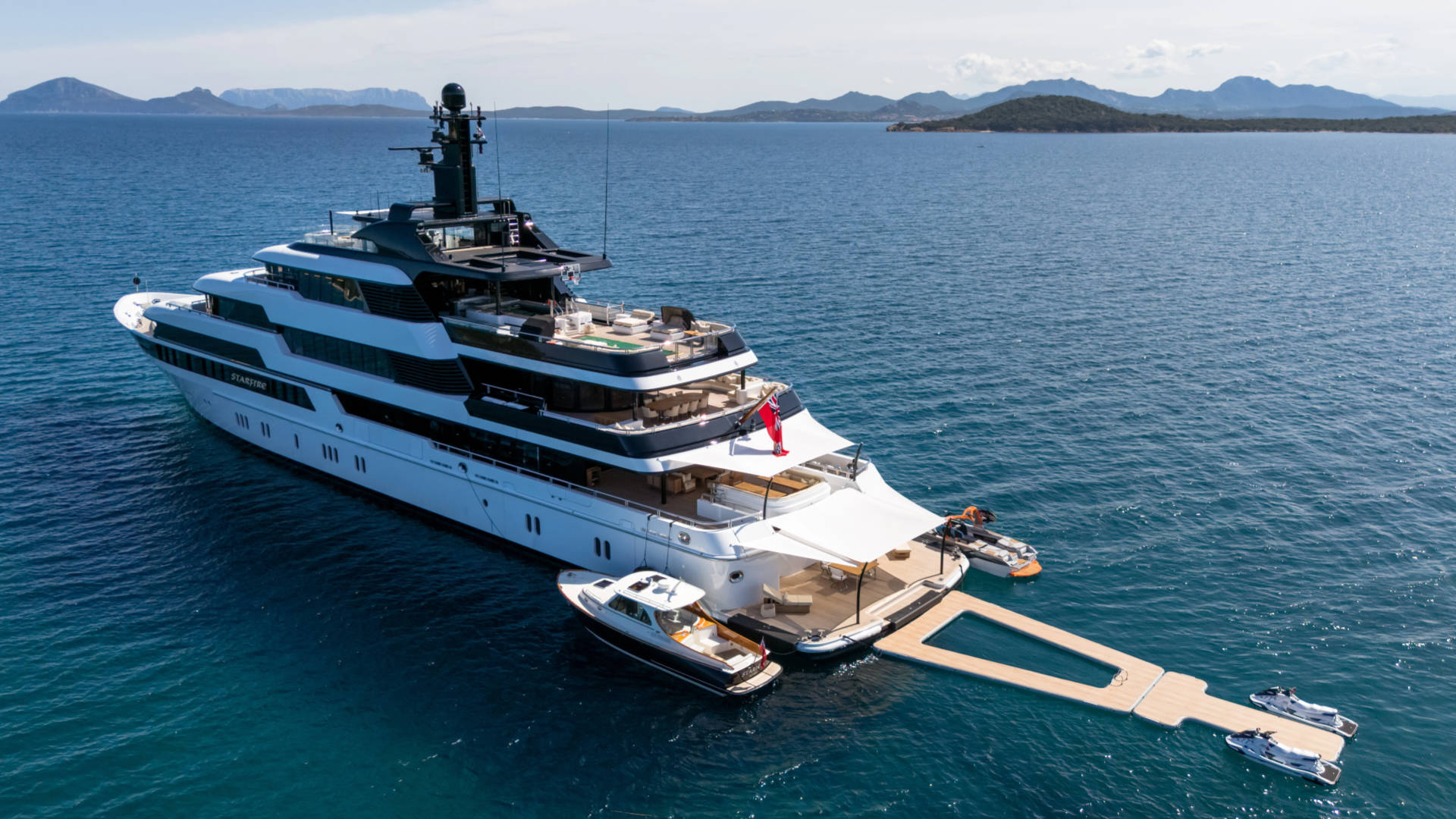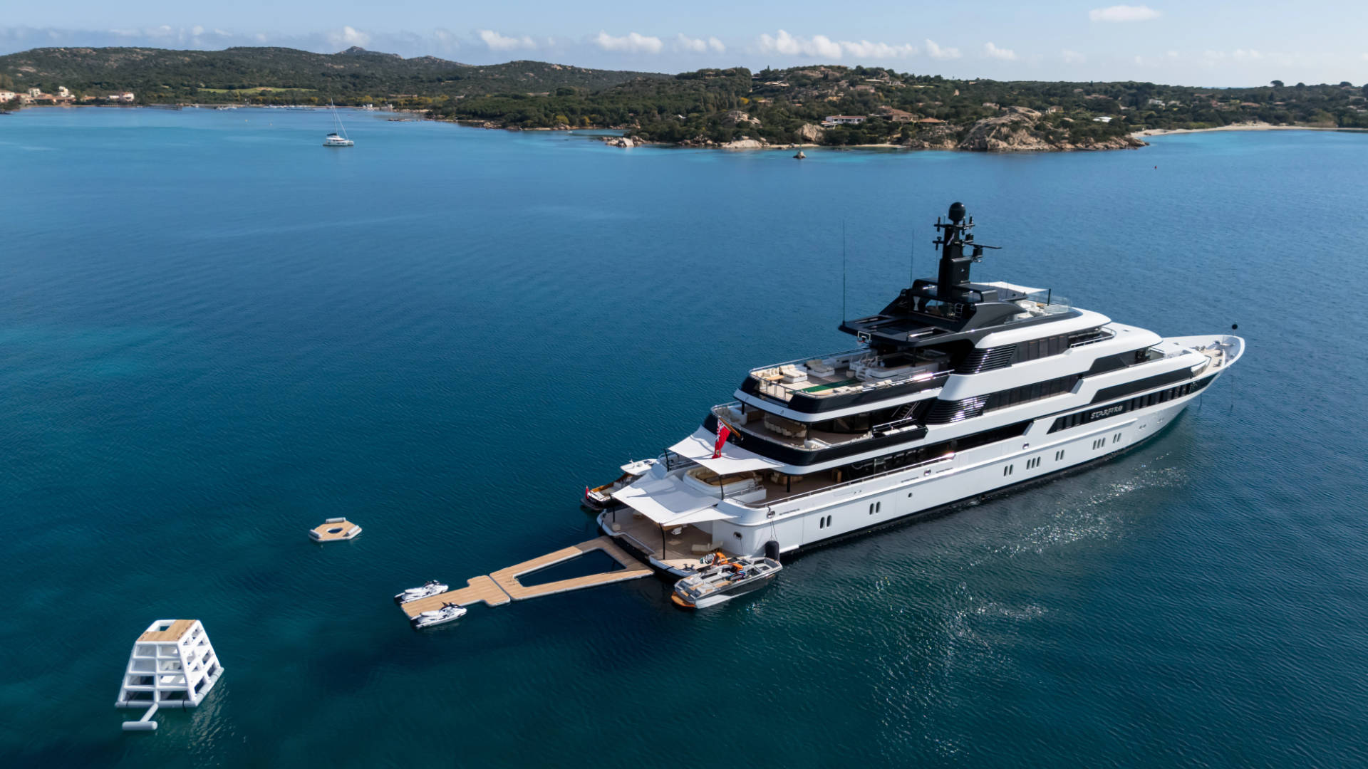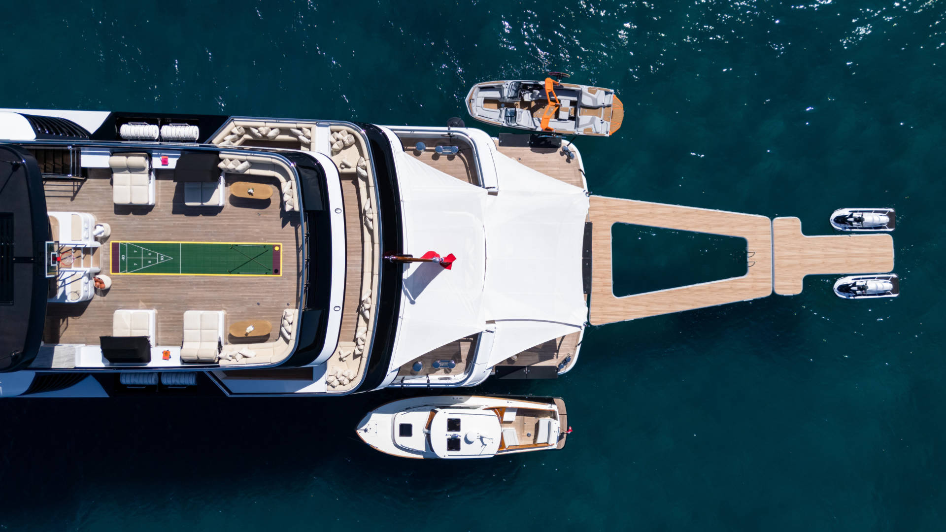 – A new inflatables package that includes a 7m x 9m sea pool; a T-dock for loading and unloading jet skis, kayaks, and SUPs; a 4m high jungle gym with integrated slide and climbing wall, a floating island, and a 3.5m high slide for the large yacht and traditional water slide from first deck aft